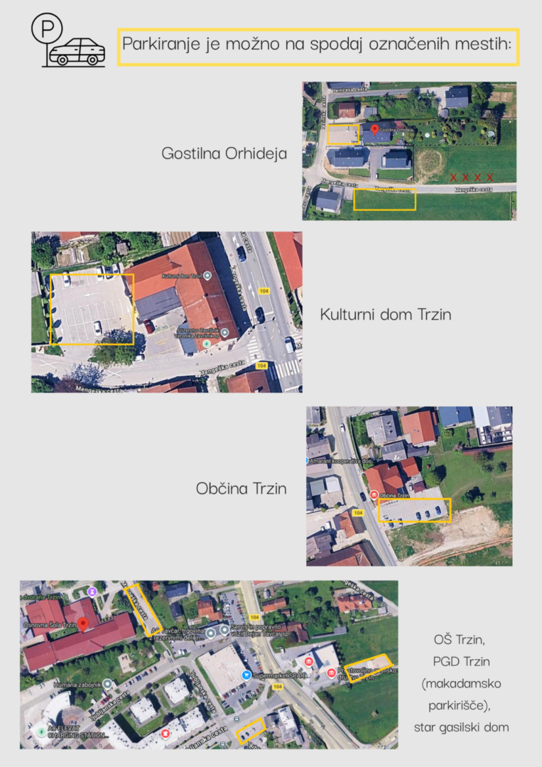 Zaradi lažje organizacije vas prosimo za informativno prijavo tukaj. Parkiranje bo mogoče na označenih mestih, ki so prikazana v prilogi.